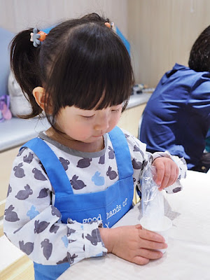 QB按着指示把材料逐樣混合一起, 十分專心呢, 抵讚!